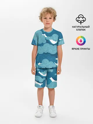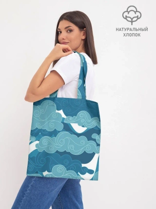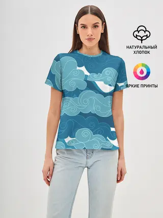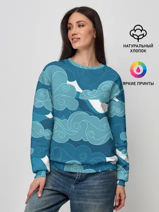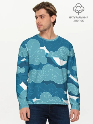 Лонгслив женский. Хлопок / Большая волна в Канагаве