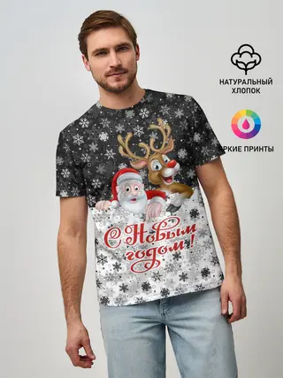 Мужская футболка оверсайз / С Новым Годом