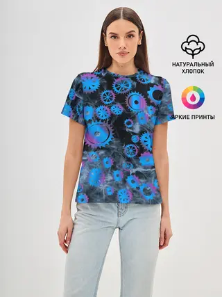 Женская базовая футболка / механизм и дым, стимпанк