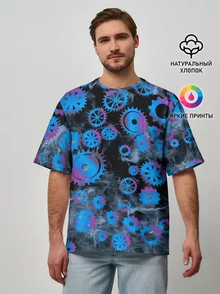 Мужская футболка оверсайз / механизм и дым, стимпанк