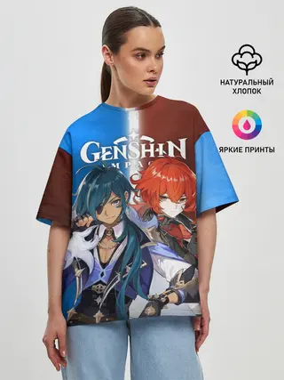 Женская футболка оверсайз / КЭЙА И ДИЛЮК | ГЕНШИН