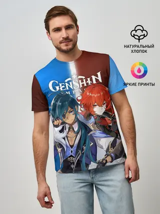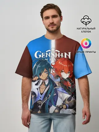 Мужская футболка оверсайз / КЭЙА И ДИЛЮК | ГЕНШИН