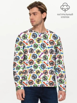 Лонгслив женский. Хлопок / Мопс в рюкзаке