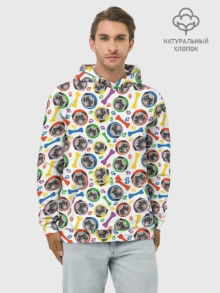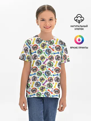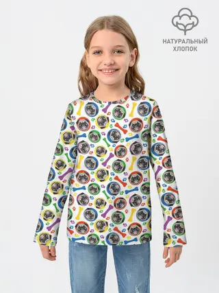 Лонгслив женский. Хлопок / Мопс в наушниках