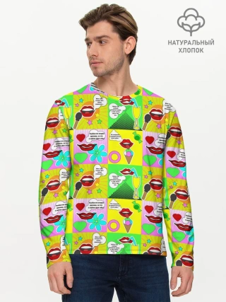 Лонгслив женский. Хлопок / Губы. Поп-арт