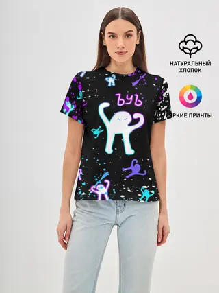 Женская базовая футболка / КОТ ЪУЪ СЪУКА | NEON