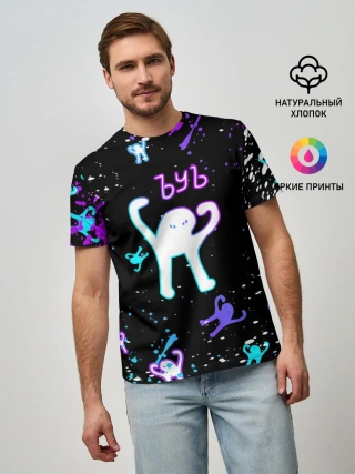 Мужская базовая футболка / КОТ ЪУЪ СЪУКА | NEON