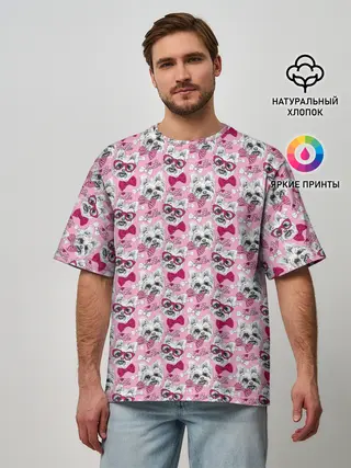 Мужская футболка оверсайз / Йоркширский Терьер на Розовом Фоне