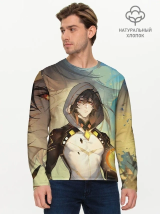 Мужской лонгслив базовый / Чжун Ли, Zhongli, Genshin Impact