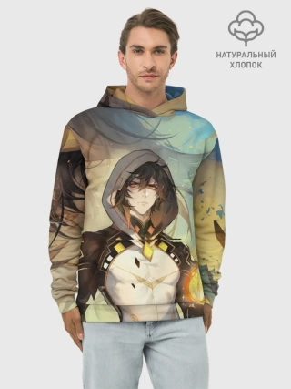 Худи мужской база хлопок / Чжун Ли, Zhongli, Genshin Impact
