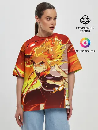 Женская футболка оверсайз / Ренгоку Кёджуро, Клинок рассекающий демонов