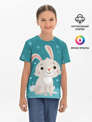 Детская базовая футболка / Новогодний зайчик