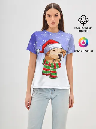 Женская базовая футболка / Новогодний Лабрадор / New Years Labrador