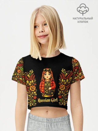 Футболка для девочки укороченная базовая хлопок / Russian girl