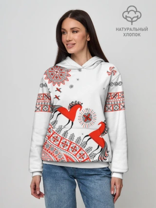Худи женский оверсайз хлопок / Мезенская роспись Horse
