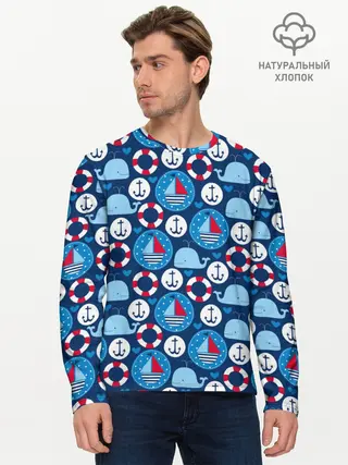 Мужской лонгслив базовый / Киты и яхты