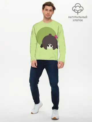 Мужской лонгслив базовый / Прикольная панда с бабочкой