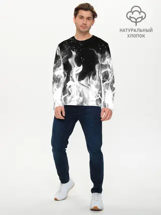 Мужской лонгслив базовый / ЧЕРНО БЕЛЫЙ ОГОНЬ