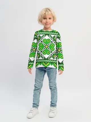 Детский лонгслив / Славянский Узор Зеленый