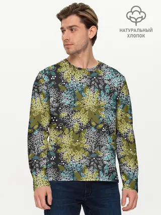 Мужской лонгслив базовый / Черно оливковый цветочный