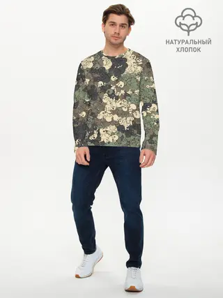 Мужской лонгслив базовый / Камуфляжный рисунок из черепов