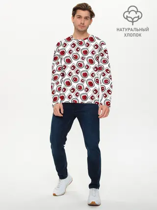 Мужской лонгслив базовый / Красно черный узор на белом