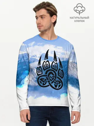 Мужской лонгслив базовый / Печать Велеса | Волчья лапа