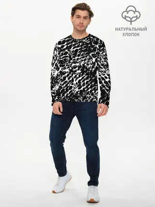 Мужской лонгслив базовый / Хаос белого на черном