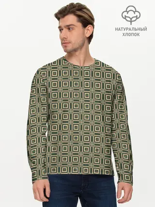 Мужской лонгслив базовый / Абстракция из зеленых квадратов