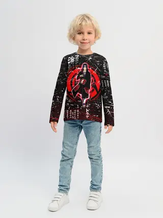 Детский лонгслив / ИТАЧИ УЧИХА ИЕРОГЛИФЫ гранж