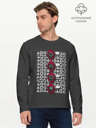 Мужской лонгслив базовый / Игра в кальмара - символы