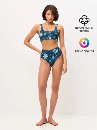 Женская пижама с шортами / Новогодние снежинки, новый год