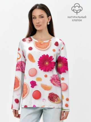 Лонгслив женский. Хлопок / Фрукты
