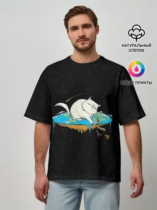 Мужская футболка оверсайз / Flat earth Cat