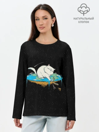 Лонгслив женский. Хлопок / Flat earth Cat