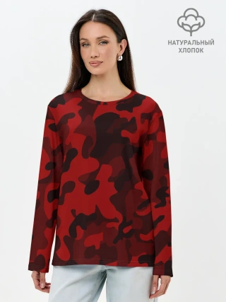 Лонгслив женский. Хлопок / RED MILITARY | КРАСНЫЙ КАМУФЛЯЖ