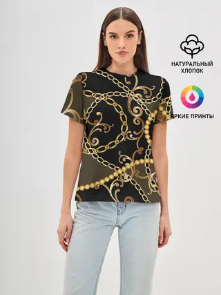 Женская базовая футболка / Золотая цепь и бусы