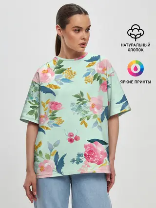 Женская футболка оверсайз / Цветы