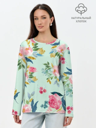 Лонгслив женский. Хлопок / Цветы