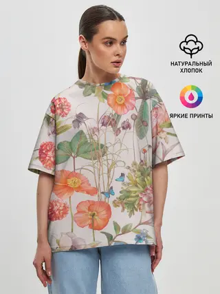 Женская футболка оверсайз / Цветы