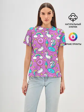 Женская базовая футболка / Pink unicorn