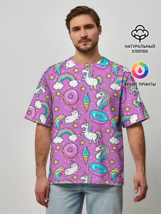 Мужская футболка оверсайз / Pink unicorn