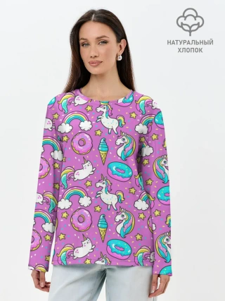 Лонгслив женский. Хлопок / Pink unicorn