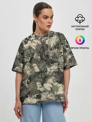Женская футболка оверсайз / Off Road камуфляж
