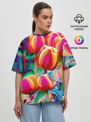Женская футболка оверсайз / Тюльпаны