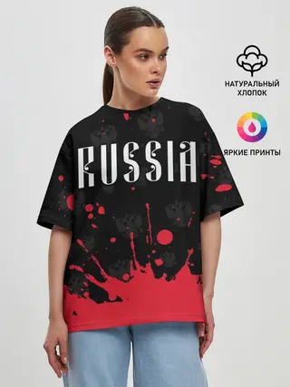 Женская футболка оверсайз / RUSSIA / РОССИЯ