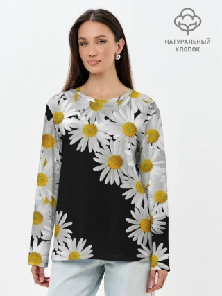 Лонгслив женский. Хлопок / Ромашковая россыпь