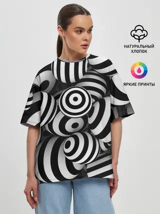 Женская футболка оверсайз / Полосатые 3D круги