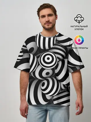 Мужская футболка оверсайз / Полосатые 3D круги