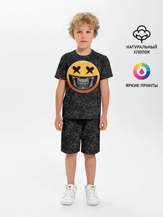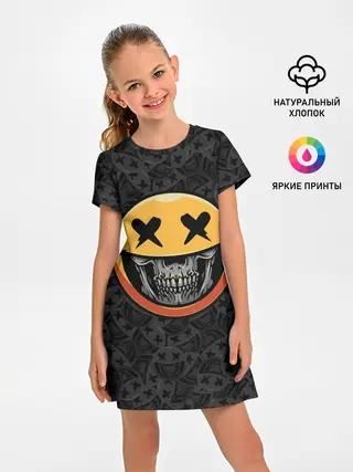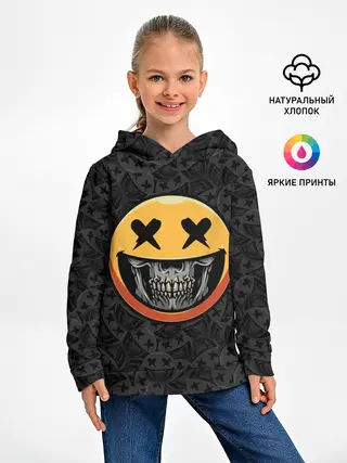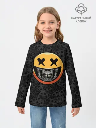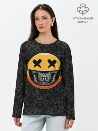 Лонгслив женский. Хлопок / Смайлик на черепе
